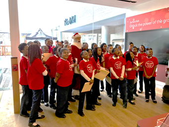 The Alain Locke Charter School choir loved performing at SWC Technology Partners and the Oakbrook Microsoft Store, serenading and playing instruments for staff and customers – and santa! The students all enjoyed a technology scavenger hunt and received goodie bags.