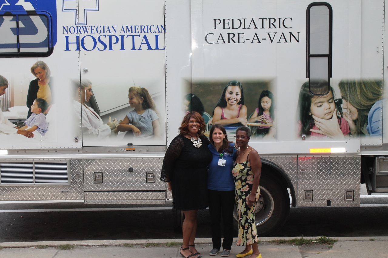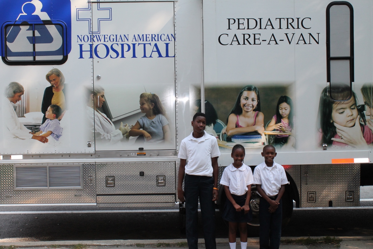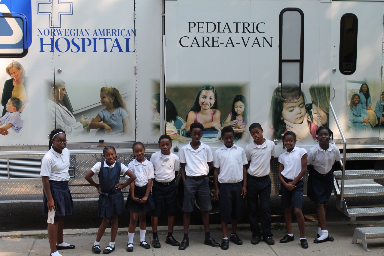 The Pediatric Care-A-Van of Norwegian American Hospital spent the morning at Alain Locke. They provided 17 students with routine immunizations and physicals required for school. We are so grateful for the opportunity Norwegian provided for the students and families of Alain Locke.